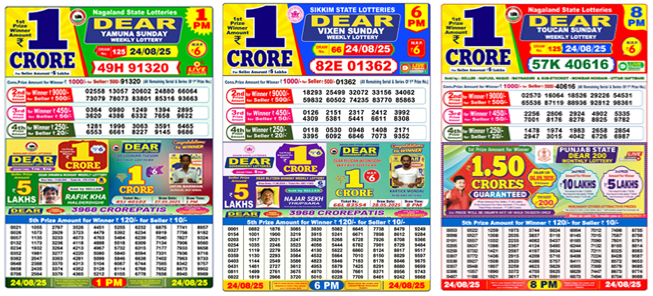 Lottery Sambad Results 25.8.2025 - Kolkata, August 25, 2025: The draw for today’s Lottery Sambad has been completed, and the winning numbers are out! Thousands of hopefuls from across West Bengal, Nagaland, and Sikkim were glued to their tickets this Monday, waiting to see if luck would smile on them. The draws were held in the morning (1 PM), day (6 PM), and evening (8 PM) under the popular Sunday Weekly Lottery schemes.